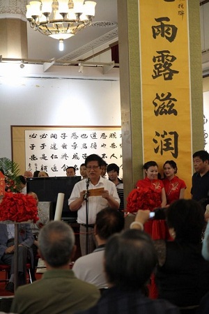 中国书法家协会理事、陕西省书法家协会名誉主席薛铸先生致谢辞(高群摄影)