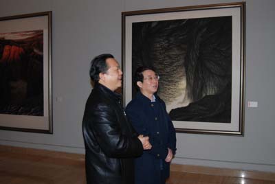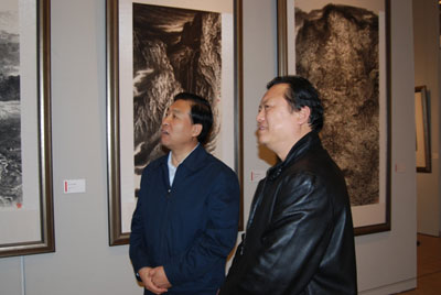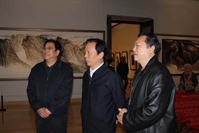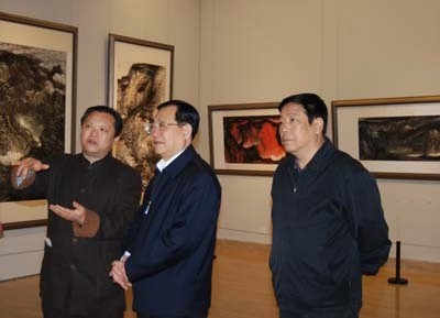 文化部王文章部长在张金卫秘书长、洪潮先生的陪同下观看展览