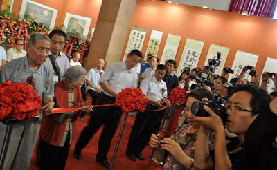 为庆祝中国共产党90华诞,喜迎辛亥革命胜利100周年,值此著名书画家胡忠元同志从艺67周年之际,为展示胡忠元同志在诗书画方面的精品力作,由国际中国书画家交流促进会、中央文献研究室科研管理部、中国工笔画学会、中国美术家协会、中国书法家协会、中国同泽书画研究院、中国诗酒文化协会、中共吉林省委党校、中国诗酒文化协会诗书画院、吉林省行政学院、广西政协书画院等单位共同主办的“胡忠元从艺67周年诗书画展”开幕式于2011年8月3日,在中国人民革命军事博物馆隆重举行。文化部原副部长、中国国家博物馆名誉馆长、国际中国书画家交流促进会会长潘震宙,中国人民解放军原工程兵第一副司令武宏将军,国务院原稽查特派员、中国国情调查研究中心主任刘吉,中国文联副主席、中国曲艺家协会名誉主席罗扬,中国人民解放军装备指挥技术学院原副院长 走进祟高研究院院长贺茂之将军,解放军军事科学院军队建设部副部长曾凡祥将军,李可染艺术基金会理事长、中央美院教授邹佩珠,中国国家画院常务副院长、中国美协理事卢禹舜,中国工笔画学会会长、中国国际文化传播中心副理事长林凡,中央文献研究室科研管理部主任刘金田,中国美术家协会理事、吉林省美协主席易洪斌,中国同泽书画研究院院长赵华胜,原中国驻越南大使齐建国,文化部恭王府管理处主任、国际中国书画家交流促进会顾问谷长江,解放军报社总编辑陈锡祥,中国美术出版社党组书记迟乃义,中国工笔画学会副会长、中央美术学院教授蒋采萍,中国工笔画学会副会长、中国美术家协会理事冯大中,国际中国书画家交流促进会副会长、中国科学技术文化城筹委会副主任李正钢,中国美术家协会理事、中国美协理论委员会副主任王仲,中共吉林省委党校校长李永发,国内动态调查委员会党组书记、主任李广年,中国诗酒文化协会常务副会长娄德平,中国诗酒文化协会诗书画院院长杨义军,中组部干部局原副局长陈亚舟,李可染艺术基金会副秘书长周玉兰,中央美术学院教授、上海美术学院院长、 中国美协《美术》杂志主编李天祥,中国女子画院院长、俄罗斯列宾美院名誉博士赵友萍,鲁迅美术学院教授、著名画家孙恩桐,曲阜孔子学院院长、北京国际汉字研究会会长李敏生,福建昭名寺主持、著名佛学专家释界空,中国同泽书画研究院执行副院长、著名画家角振通,北京大学教授、著名书法家张振国,中国摄影家协会理事、大众摄影杂志主编佟树珩,中国同泽书画研究院艺术总监黄微,烟台大学教授、著名报告文学作家杨建,吉林省社会主义学院教授李长荣,广西昆仑书画院院长方建诠等社会各界知名人士及首都新闻媒体近千人出席。国际中国书画家交流促进会秘书长张金卫主持了开展式,并宣读了中共中央政治局常委、全国政协贾庆林主席为胡忠元同志展览的题词:“艺海精英”。林凡会长代表主协承办单位讲话,易洪斌主席、赵华胜院长、贺茂之院长分别代表书画艺术界致辞,潘震宙、武宏、刘吉、罗扬、邹佩珠、卢禹舜、林凡、易洪斌、赵华胜、刘金田、李永发为开幕式剪彩。