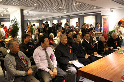 由国际中国书画家交流促进会、北京华夏传承国际拍卖公司主办的“欧豪年书画作品展开幕式暨情系雅安书画捐赠仪式”,于2013年4月27日在京隆重举行,张金卫秘书长主持开幕式。(陈伟摄影)