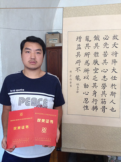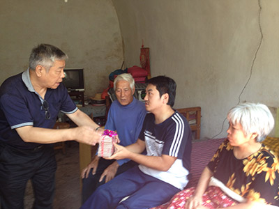 2013年8月31日,国际中国书画家交流促进会秘书长、中华慈善总会明天会更好慈善爱心书画艺术交流基金管理办公室副主任张金卫,中国书画报北京记者站站长曹玉文,爱心企业家、大同康健药业有限责任公司总经理武利斌等一行4人乘车6小时左右,专程前往河北井陉县北要村代表“华夏之星”爱心书画家看望并慰问了血友病患者郎彦伟先生,并将7月28日在山东泰安,由中国书画报社、中华慈善总会明天会更好慈善爱心书画艺术交流基金联合主办的“华夏之星与慈善同行爱心笔会”上40多位爱心书画家通过书画创作募集到的10万元善款转赠给他,希望郎彦伟先生尽快恢复健康。郎彦伟,1990年出生于井陉县辛庄乡北要子村,患病至今已十余年。十年前,他还是一个活泼可爱的小孩,品学兼优,并酷爱书法艺术,从2003至2005年连续三年参加中央电视台和中国文联共同举办的“墨彩杯”全国青少儿书画作品电视大赛,先后获得一次儿童组二等奖和两次少年组一等奖。但无情的病魔突然袭来,致使他的手不能用力,胳膊也不能活动,连写字这样最轻微的体力运动都无法完成,本可以成为书法家的一个好苗子就这样夭折了。郎彦伟的母亲苏爱英,自幼因小儿麻痹高位截瘫,为二级残疾,长年卧床,生活难以自理,全家仅靠父亲郎柱山微薄的退休金勉强度日。但郎柱山也是残疾人,左脚伤残令行走十分不便。尽管如此,如今已古稀之年的他,除照顾家中妻儿外,还要下地务农,以补贴家用。郎彦伟维持生命所需的医药费每年约需30万元。因当地医药部门很少引进血友病所需药品,所以他不能享受到农村医疗保险,今年开始才可报销5万多元,其余只能自费。慈善不仅是一时的善举,慈善更需要真心付出,更需要持久坚守,需要更多人的参与。