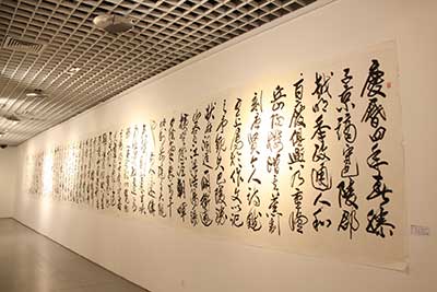 此次展览展出书画作品近百幅,楷、草、隶、篆、行各种书体均有呈现,用笔老道凝练,章法规整有序,刚柔相济,富有时代韵律感。他在继承中国传统书法艺术风貌的基础之上,大胆的把传统与创新,章法与个性巧妙地融合在一起,自成一体,用笔翻转扭旋,富弹性有韧性,属于对虫体内各笔法继承之后的破解,更多的是发展,有着独特的风格。其中15米长的巨幅书法作品《范仲淹·岳阳楼记》是对张天文书法艺术功底的体现。国画作品以花鸟为主,牡丹、紫藤、荷花造型准确生动,神情各异。本次展览将是对张天文先生在书画创作方面的一次大展示。展览于3月11日结束。