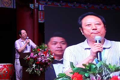 李长春先生、张金卫先生上台接受国林部长、李晋有主任向活动组委会赠送题词。