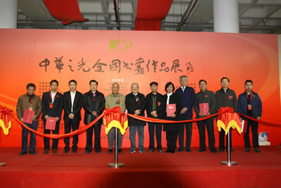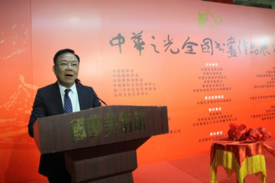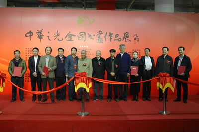 为庆祝中华人民共和国成立66周年,纪念中国人民抗日战争暨世界反法西斯战争胜利70周年,用书画的艺术形式展现实现中华民族伟大复兴的中国梦的丰富内涵,弘扬中华优秀传统文化和民族精神,进一步推广、宣传中华之光中国科学技术文化城项目,使之成为国家级爱国主义教育和科普教育基地,由中国艺术研究院、中国画学会、西泠印社、中国楹联学会、中国文物学会、中国收藏家协会、中国博物馆协会、中国文物保护基金会、中国国家画院书法篆刻院、中国国际文化艺术中心、中国书画报社、国艺美术馆、澳门中华文化艺术协会、香港美术研究会、台湾中华书学会、派顿文化艺术中心、中国科学技术文化城筹委会、国际中国书画家交流促进会等海峡两岸四地众多单位共同主办,珠海伊斯佳科技股份有限公司、书法报社、中华社会文化发展基金会、首都书画院、深圳三滴水书画院、郭氏国际集团、联城印刷(北京)有限公司、北京瀚源文汇文化传播有限公司、宁夏观唐文化艺术传媒有限公司、中嘉信东(北京)文化传媒有限公司、北京昌昊伟业文化发展有限公司、国际中国书画家出版社共同协办的“第二届中华之光(派顿杯)全国书画作品展”,于2015年10月31日在北京国艺美术馆隆重开幕。国家民委原副主任、国际中国书画家交流促进会副会长李晋有,全国政协原副秘书长、十届民革中央副主席李赣骝,中国文联副主席、中国曲艺家协会名誉主席罗扬,中央军委办公厅原副主任曹育民,全国政协委员、中国书法家协会副主席赵长青,新疆军区副参谋长李建祯少将,中国收藏家协会会长罗伯健,中国文物学会副会长兼秘书长黄元,中国楹联学会副会长肖良平,中国书画收藏家协会副会长王永茂,全国人大华侨委员会司长朱守道,外交部老干部局副局长李少青,中国书画报社社长何东,中国国家画院艺术交流中心主任、中国美协理事胡宝利,派顿文化艺术中心总顾问、第二届中华之光全国书画作品展组委会执行主任郭廷真,国际中国书画家交流促进会副会长李正钢,伊斯佳科技股份有限公司董事长、第二届中华之光全国书画作品展组委会副主任王德友,北京国艺美术馆馆长王清杰,国际中国书画家交流促进会顾问金思宇,中国工笔画学会副秘书长王裕国,中国智慧工程研究会副会长张华夏,中央戏剧学院戏剧文学系教授郭富民,中国美协理事骆根兴,中国书协理事丁谦、刘俊京、王元军、沈一丹等,新加坡书法篆刻会顾问丘程光,美国国际美术家协会会长李雄风,美国商会会长蔡炳辉,派顿文化艺术中心总顾问郭杰、顾问郭培明、郭宁、艺术总监郭廷坚,派顿文化艺术中心董事长陈伟坤,派顿文化艺术中心主任贺毅行,书画家及社会各界知名人士胡忠元、李涵、张鄂生、杨骥川、程华、冯经湖、杨彦、翟品善、王冠人、王家立、曹心源、郑庆和、马秀英、杨大鹏、王建勋、程茂全、范梅强、李毅、北海、杨雍、王世利、于谋勇、厚佛、陆燕生、王嘉瑞、甘霖、郭子昂、赵进才、杨卉茹、李宗原、彭一超、李优良、丁岳奇、张明龙、王瑞春,本次展览获奖书画家陆天宁、赵望来、张伟健、马羿良、马景岭、户广生、江枫、吴马、柏溪、赵文洁、莫华生、韩一、刘丽燕、王云玲、于军、马洪琪、方建平、方树华、方继良、王尔源、王兆会、王国锋、王振宇、王海轩、王景怀、刘建银、闫树忠、何属辉、张博、张培、张介一、张延华、张晓燕、张桂寅、张艳军、李书敖、李汉祥、李国强、杜思吾、苏志福、苏海涛、周杰、周继中、郑开辉、郑国华、胡献智、骆文良、徐亮、秦立田、聂建生、顾献忠、随坤、渭华、董洪魁、魏亚楠、杜泓、王冰、潘建树等出席。国际书画家交流促进会秘书长张金卫主持了开幕式。在开幕式上,郭廷真主任、王清杰馆长、王德友董事长分别致辞。李晋有、曹育民、罗扬、李赣骝、赵长青、何东等领到向展览金银铜获奖者颁发证书并为开幕式剪彩。大型画册《第二届中华之光全国书画作品集》也隆重首发。