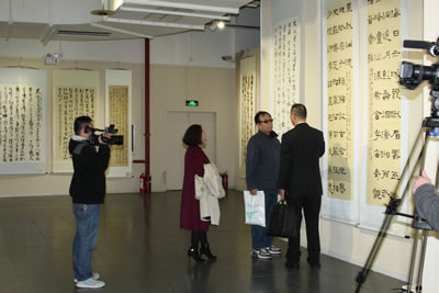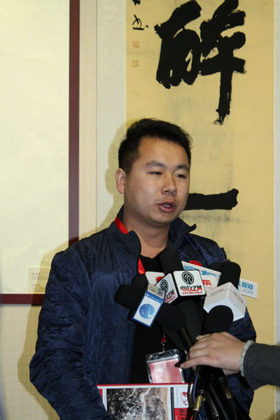 本次展览书法金奖获得者赵望来先生接受媒体采访