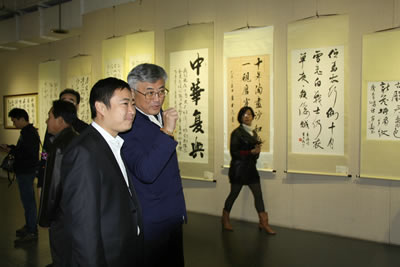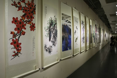 展览汇集了当代五百余位来自内地和港、澳、台地区及美国、德国、意大利、法国、新加坡、马来西亚等地内地、港澳台及海外书画家的作品,内容丰富、形式多样,大幅、巨幅作品众多,是一次艺术交流、高艺术水准的盛会。书画家们用饱醮着对祖国深深祝福的画笔,通过书画的形式,向新中国66华诞献上的一份厚礼和最好的祝福,也为举国欢庆建国66周年增添了浓墨重彩的一笔。展览于11月4日结束,将于12月中下旬将在深圳、香港、澳门、珠海举办获奖书画家作品巡展。
