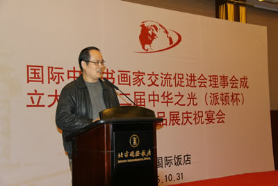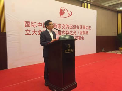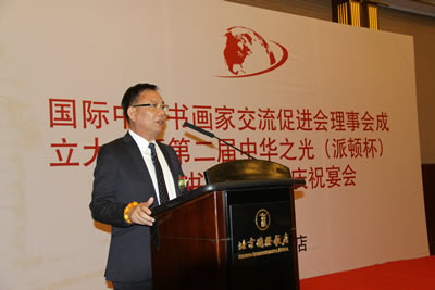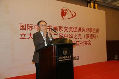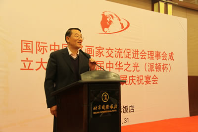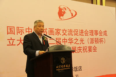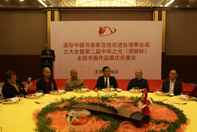 国际中国书画家交流促进会理事会成立大会暨第二届中华之光(派顿杯)全国书画作品展庆祝宴会在北京国际饭店国际厅隆重举行