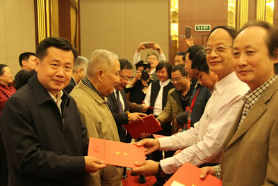 李晋有主任、李赣骝主席、罗扬主席、李少青局长、何东社长、郭廷真会长等领导向首批国际中国书画家交流促进会理事颁发聘书