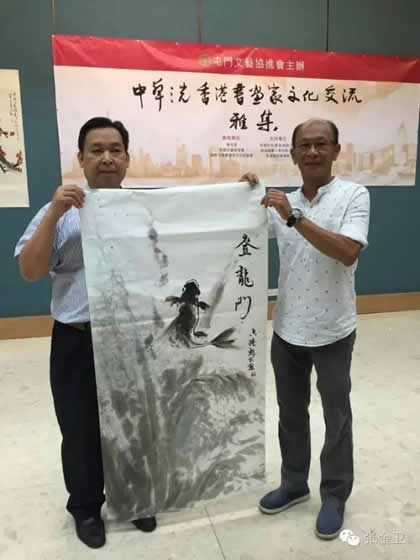 2016年7月23日——28日,由国际中国书画家交流促进会副会长覃汉龙任团长,国际中国书画家交流促进会秘书长张金卫任执行团长,国际中国书画家交流促进会副秘书长马秀英任副团长的中华之光书画家赴港澳代表团一行十人出席为庆祝香港回归祖国19周年,澳门回归祖国17周年,促进内地与港澳书画艺术的交流,在香港康乐及文化事务署的大力支持下,由香港屯门文艺协进会、香港无名堂美术书法协会、澳门书画艺术联谊会、中国收藏家协会、中华文化促进会珠海代表机构、国际中国书画家交流促进会共同主办,广西福森投资有限公司、宁夏观唐文化传媒有限公司、中国书画家联谊会寿文化艺术委员会、易达物流( 香港) 有限公司、新恊棚业工程有限公司、香港艺术论坛网协办,北京新时代经纬文化中心承办的“中华之光书画家与港澳书画家联展暨书画艺术交流雅集活动”。