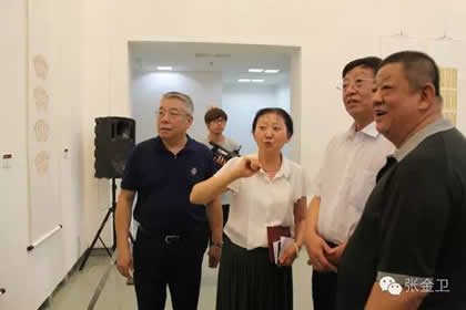 刘延福主席、张金卫秘书长、王凯英女士陪同赵庆忠部长观看展览。