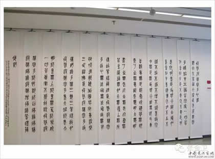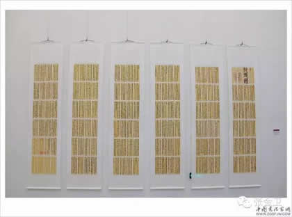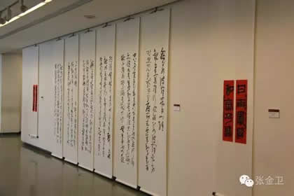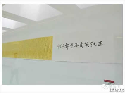 王凯英书法作品展览,是近几年来王凯英通过艺术实践和理论研究创作的汇集,是中国古代文人和现代文化的彰显;是传播真善美,挖掘祖国民族文化、宣传齐鲁文化和运河文化的创新文化艺术展览;是向领导老师同学作一次汇报,自己作一次总结,一个促进提高的展览。此次展出王凯英近几年来创作的100余幅各体书法佳作。内容由古今诗词和道德经、佛教经典两大部分约十余万字所组成,其中长卷条幅,《泰山经石峪金刚经》,《汉祀三公山碑》拓片18幅,为展览首创研究之作。由敦煌文艺出版社出版的《禅茶若水》上下两册书法作品集在开幕式上同时首发。