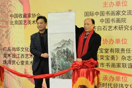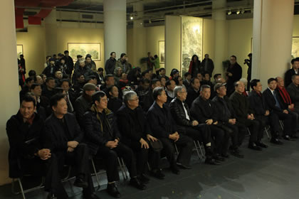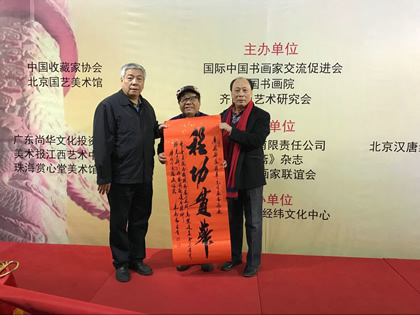 国家民委原副主任、国际中国书画家交流促进会副会长李晋有,全国工商联原副主席兼秘书长、原国家物资部副部长桓玉珊,全国政协十届外事委员会副主任、中共中央对外联络部原副部长李北海,文化部原副部长常克仁,中央宣传部原秘书长、中国政研会副会长官景辉,中国法律援助基金会会长、中央纪委驻司法部纪律检查组原组长岳宣义,中国书协顾问、中国书协原常务副主席、分党组书记、中国书协中直机关分会会长张飙,武警北京市总队原副政委李金星少将,中国收藏家协会会长罗伯健,中国少数民族美术促进会副会长、中国收藏家协会副会长郭正英,中国智慧工程研究会第一副会长、中联部原行政局长李小祥,国际中国书画家交流促进会副会长李正钢,燕京书画社总经理石占成,北京晚报文艺部主任、著名美术评论家刘建伟,北京晚报新闻部主任周家望,中国书画产业联盟常务副主席、国家一级美术师姚少华,中华文化学院中国花鸟画研修院院长、博士生导师、全国政协文史书画院常务副院长徐湛,中国人民对外友好协会艺术创作院副院长、中央文史研究馆书画院研究员赵准旺,中国美协中国画艺委会委员、中国画学会副秘书长、荣宝斋画院院长唐辉,北京国艺美术馆馆长、中央国家机关书法家协会主席团成员王清杰,中央国家机关书法家协会副主席兼秘书长、中央国家机关美术家协会副主席尹祥君,中国金融文联全委会委员、中国金融美术家协会副主席兼秘书长杨雍,中央电视台书画院秘书长刘俊改,中国书法艺术家协会副主席、文化部老艺术家书画院副院长米南阳、北京市政协委员、北京宏宝堂文化有限公司董事长程茂全,国际中国书画家交流促进会艺术总监、北京瀚源文汇文化传播有限公司总监王瑞春,中国工笔画学会理事、中国少数民族美术促进会理事阿里雷公,北京东盛残疾人公益事业服务中心主任娄际川,中国长城书画协会副秘书长徐健,中华书画协会常务副主席兼秘书长魏斗,广东女企业家商会副会长、广东尚华文化投资有限公司董事长李海霞,全国工商联民间文物艺术品商会学术委员会中国当代艺术家研究会副会长袁建华,北京中国书画收藏家协会副会长、文物鉴定委员会副主任于文玉,北京军谊永和文化中心主任、中国军谊书画网主编刘志海,首都书画院副院长袁盟博,中国职工文体协会电子分会副主席兼秘书长李长好,中国福建省诚信促进会副会长、乾豊国际控股有限公司执行董事林道钦,清和美慧(北京)科技文化有限公司董事长肖静慧,贵州中心酿酒集团酱香封坛酒业有限公司执行总裁周方飞、法人代表何茂山,欧洲中国书法家协会主席、北京中国书画院副院长金岳祺,中华艺术国际交流协会主席、比利时书画艺术研究院院长陆惟华教授,比利时世界文化艺术交流中心主席侯杏妹教授,乌克兰华人华侨协会副主席赵克帅,中华之光书画家、社会各界知名人士及首都新闻媒体张和平、高清桂、魏乾辉、周铭、方继良、刘德、陶古、王国锋、吴马、丁良贵、董洪魁、高福海、何属辉、董红君、唐平甲、刘丽燕、万京民、王云玲、顾献忠、谢莉豪、曹环义、古石、张宝良、陈杨、张召京、丁宁、贺德昌、高群、夏季等三百余人出席。国际中国书画家交流促进会秘书长张金卫主持了开幕式。