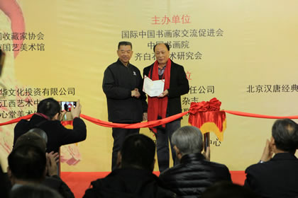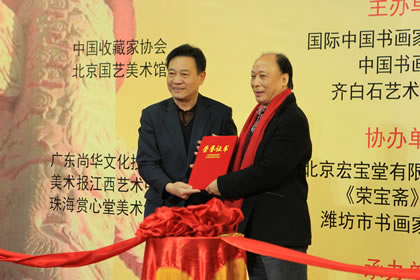 中国收藏家协会会长罗伯健先生向程华先生颁发收藏荣誉证书