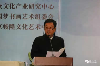 活动组委会秘书长、国际中国书画家交流促进会秘书长张金卫先生宣读贺电,并宣读中国美术家协会主席刘大为先生为张汝超画展发来的贺信。