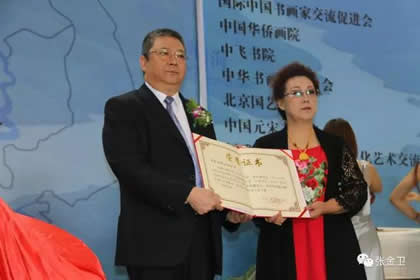 尹玉强主任向中华之光书画家颁发荣誉证书并合影留念。