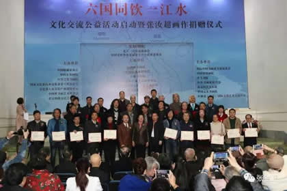 近六百余位社会各界知名人士出席“六国同饮一江水”文化交流公益活动启动暨张汝超画作捐赠仪式。