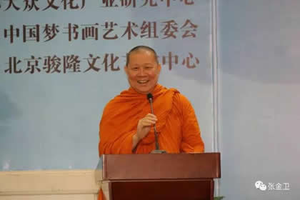 组委会秘书长张金卫代表组委会接受泰国副僧王、岱密中学孔子课堂理事会主席赵昆通猜大师赠送纪念礼品。