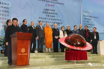 十届全国人大常委会副委员长、全国妇联主席顾秀莲,中国侨联原主席、庄希泉基金会主席庄炎林,十届全国人大常委、贵州省原省长、轻工业部老部长陈士能,中国出版工作者协会主席、国家新闻出版署原署长于友先,全国政协民族和宗教委员会主任、中共中央统战部原常务副部长朱维群,文化部原副部长、国际中国书画家交流促进会会长潘震宙,国家民委原副主任、国际中国书画家交流促进会副会长李晋有,全国政协外事委员会副主任、中共中央对外联络部原副部长李北海,全国工商联原副主席兼秘书长、国家物资部原副部长桓玉珊,文化部原副部长常克仁,农业部原副部长刘广运,中央中共宣传部原秘书长、中国政研会副会长官景辉,全国政协常委、北京市原副市长孙安民,原习仲勋同志秘书曹志斌,国家文物局原副局长、中国收藏家协会原会长闫振堂,中国收藏家协会会长罗伯健,中国智慧工程研究会副会长高智辉,文化部艺术司原副司长、中国美术馆原副馆长高伟,中国收藏家协会常务副会长兼秘书长杨晋英,中国书画家联谊会执行主席王子忠,中国书画报社社长何东,中国铁路文联主席、中国书法家协会理事王勇平,中国美协理事、中国华侨画院院长张清智,燕京书画社社长石占成、中国山水画创作院执行院长叶浓、骏隆文化艺术中心主任王向新,国际中国书画家交流促进会秘书长张金卫,发起单位领导北京一点公益基金会理事长王凤林,中国老龄事业发展基金会常务副理事长闫青春,中国老龄事业发展基金会公益养老基金常务副主任尹玉强,中国老龄事业发展基金会公益养老基金秘书长王中一,泰国驻中国大使馆外交官符志英女士,老挝驻中国大使馆外交官本恒·西哈拉先生,老挝驻中国大使馆外交官德丰先生,来自泰国副僧王、岱密中学孔子课堂理事会主席赵坤通猜大师,泰国亲王席琳·荣松亲王,泰国国王御林军副总指挥那蓬·彭塔上将,泰国泰王御林军副总指挥顾问郑金龙先生,泰国宪法委员会委员娜丽婉女士,前泰国国家旅游体育部部长代表蒂帕婉女士,泰国中国和平统一促进会会长王志民先生,中国和平统一促进会会长夫人王林怡珠女士,泰国华文教师公会副主席马嫣女士,泰国云南商会会长杨源辉先生,越南胡志明市书画家协会原会长李克柔,越南胡志明市书画家协会主席张路,老挝文化部美术局副局长美术史博士博银、老挝国家美术学院院长麦新、美国内华达州美中经贸文化艺术交流协会荣誉会长蔡炳辉等数十位外宾,著名画家和中华之光书画家及社会各界知名人士:穆永瑞、程茂全、张汝超、张若平、王信聪、杨雍、周铭、邢少臣、金大钧、赵青仲、许喜林、彭一超、袁盟博、户广生、柏溪、张国云、家昌、张天文、龙黔石、张亮京、陶古、吴马、李宗原、董洪魁、董红君、方继良、王玉、丁良贵、王尔源、陈杨、万京民、刘丽燕、顾献忠、孙兆河、王丽蓉、江枫、翟鑫、冯斌、戎家造、李志财、王耀宇、古石、蔡新欢、董小庄、李新辉、谢莉豪、罗三坡、刘晓绯等,以及首都各大新闻媒体等近六百人出席仪式。活动由中央电视台节目主持人、著名播音员长啸主持。