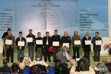 尹玉强主任向中华之光书画家颁发荣誉证书并合影留念。