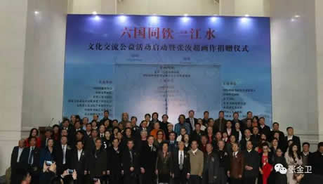为加强大湄公河次区域即中国与柬埔寨、老挝、缅甸、泰国、越南六国之间文化的交流与合作,由北京一点公益基金会、中国老龄事业发展基金会公益养老基金作为发起单位,由中国收藏家协会、中国书画院、国际中国书画家交流促进会、中国水墨画院、中国山水画创作院、中国华侨画院、中华之光书画院、首都书画院、中飞书苑、国家文化惠民和文化养老工程办公室、中国文化产业发展研究中心、中国企业报集团、文化部大众文化产业研究中心、公安部全国公安文化影视联盟、北京国艺美术馆、中国梦书画艺术组委会、中华书画家联合会、中国元宋书画院、北京骏隆文化艺术中心、恒雅斋(北京)国际文化艺术交流中心作为主办单位,由中国老龄事业发展基金会公益养老基金、全中联益(北京)养老产业投资有限公司、北京新时代经纬文化中心承办的“六国同饮一江水”文化交流公益活动启动仪式,于2017年3月21日,在北京民族文化宫中央展厅隆重举行。