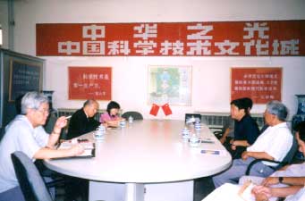 2001年9月8日 日本国际贸易促进会理事长中田庆雄一行四人来到中科城筹委会办公楼,对中国科学技术文化城项目进行考察。张金卫秘书长首先向日本友人介绍了中科城的有关筹备情况,双方就有关合作事宜进行了有益的探讨。筹委会副秘书长赵进,筹委会委员郑重鹤、徐桂德、左玉梅等出席了会见。考察结束后双方合影留念。