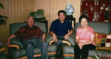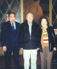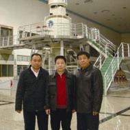 | 张金卫执行理事长向王光英副委员长和夫人应伊利委员汇报工作并合影。 | 李正钢理事长、张金卫执行理事长在航天英雄杨利伟陪同下参观“神六”飞船并合影留念。 |