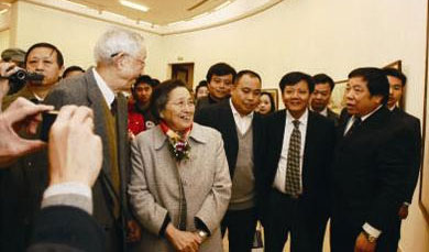 | 李正钢理事长陪同王光英副委员长、应伊利委员参观展览后合影留念。 | 全国人大副委员长何鲁丽在中国美协顾问王琦、名誉理事长邓培星、李正钢理事长、张金卫执行理事长的陪同下参观王琦书画新作展。 |