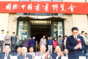 全国人大副委员长李铁映上出席国际中国书画博览会,并向主办单位致意。 |