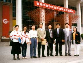 1997年3月28日,我会与中国市长协会、中国美术家协会、中国书法家协会等单位联合举办“首届中国市长艺术博览会”在广东省博物馆隆重开幕。组委会工作人员在会场前合影留念。 |