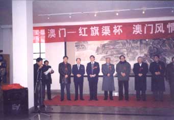 2000年1月12日,锦绣澳门全国书画艺术巡回展在郑州举行。郑州市委书记王有杰、省人大常委会副主任侯志英、市人大主任岳修武等有关领导观看展览。张金卫秘书长正在主持开幕式。 |