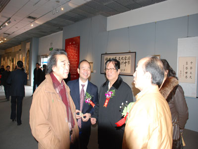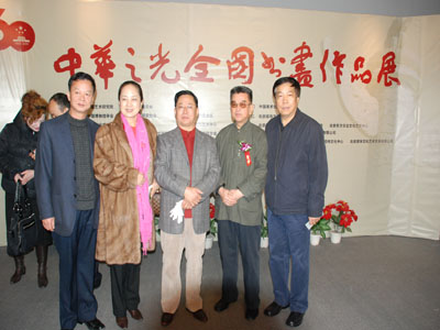 为庆祝建国60周年,弘扬中华民族优秀传统文化和民族精神,讴歌祖国的壮美山河,展示锦绣中华气势磅礴、绚丽多彩的美丽画卷,并作为中华之光中国科学技术文化城项目正式启动的标志,由中国艺术研究院、中华慈善总会、中国文物学会、中国博物馆学会、中国收藏家协会、中国文化报社、中国文物报社、中国国际文化艺术中心、国际中国书画家交流促进会、中国科学技术文化城筹建委员会等单位共同举办的“中华之光全国书画作品展”开幕式,于2009年11月11日在北京中国国家图书馆美术馆隆重举行,此展是一次以艺术创作交流、宣传弘扬慈善公益理念为主题的全国性书画展。全国政协副主席阿不来提·阿不都热西提,九届全国人大副委员长彭珮云,十届全国人大副委员长顾秀莲,全国政协副秘书长孙怀山,文化部副部长王文章,国家民委副主任、国际中国书画家交流促进会副会长李晋有、中国人民解放军海军副政委康成元,中华慈善总会秘书长刘国林,中国人民解放军武警司令员李连秀,中国人民解放军工程兵副司令员武宏,中国文联副主席罗扬,中日友好协会会长文迟,中国人民解放军武警总部后勤部原政委于溪源,中国人民解放军军事博物馆馆长郭得河,中国收藏家协会会长阎振堂,常务副会长杜耀西,中国文物学会副会长张晓雨,中国文物报社副社长杨开金等,著名书画家和社会各界知名人士张书范、薛铸、田伯平、米南阳、朱守道、胡宝利、杨光华、张金玲、刘光夏、董浩、王信聪、缪法宝、翟品善、高晨阳、苏联春、洪潮等五百余人出席。国际中国书画家交流促进会秘书长张金卫主持了开幕式。在开幕式上,书画家张书范、何学斌、缪法宝、翟品善、洪潮、王信聪、苏联春代表广大书画家向中华慈善总会捐赠了书画作品支持祖国的慈善事业,中华慈善总会秘书长刘国林代表中华慈善总会接受了捐赠,并向他们表示衷心地感谢,并相信在广大书画家的热情支持下,祖国的慈善事业一定能够快速发展,推进祖国慈善事业的发展,构建和谐社会。为感谢他们的爱心之举,阿不来提副主席、彭佩云副委员长、顾秀莲副委员长、孙怀山副秘书长、王文章部长、李晋有主任、康成元政委向他们颁发了慈善爱心证书。王文章部长在开幕式上讲话,对展览的开幕表示热烈的祝贺并对活动给予了高度评价,希望书画界的朋友们再接再厉,在艺术创作方面不断取得长足发展,继续支持祖国的慈善事业,争取获得艺术交流和慈善爱心的双丰收。国际中国书画家交流促进会秘书长张金卫主持了开幕式。阿不来提·阿不都热西提、彭佩云、顾秀莲、孙怀山、王文章、李晋有、康成元、罗扬、刘国林为活动开幕式剪彩并参观了展览。