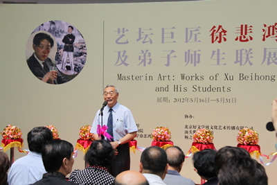 由徐悲鸿纪念馆、广州艺术博物院、徐悲鸿艺术研究院共同主办的艺术巨匠徐悲鸿及弟子师生联展开幕式,于2012年5月16日上午在广州艺术博物院隆重举行。