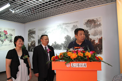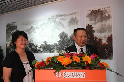 为热烈庆祝中国共产党成立91周年,喜迎党的十八大的胜利召开,由CCTV中国影响力·文化中国艺术家沙龙、国际中国书画家交流促进会、东方艺术馆联合主办,中国孔子国画院、北京凌翔阁画院、朱熹书院、中华禅宗书画院、北京盛天泰国际拍卖有限公司等单位协办,文化中国网、北京红森尚艺画院承办的,著名山水画家王信聪和夫人宋香菊的夫妻画展,于2012年7月1日,在东方艺术馆隆重举行。原周总理秘书、中国第一任礼宾官员、周恩来纪念馆馆长、著名书画家古今明,国际中国书画家交流促进会副会长李正刚、秘书长张金卫,东方艺术馆馆长张永祥,央视《寻宝》鉴定专家、林散之大师弟子、书法名家王敬之,中国孔子国画院院长、著名画家杜中良, CCTV中国影响力•文化中国艺术家沙龙执行主席高群,中华禅宗书画院秘书长、著名书法家张毅,东方艺术馆执行馆长高松,书画艺术家魏守东、王绍武、穆振庚、周自豪、徐冰、雷显平、孙志江、冀冰、朱伟霞、李丽群、耿云明、颜辉、孙玲生、李玉凤、张河强、董阔涵、丁松林、朱啓彭、曹泽菊、双启朋、石傲等社会各界嘉宾出席了开幕式。张金卫秘书长主持了开幕式,东方艺术馆馆长张永祥宣布东方艺术馆开馆及首展开幕,古今明、王敬之,张毅,高松等在开幕式上致辞。全国人大常委会副委员长王光英,中华慈善总会会长范宝俊,国家文化部原副部长、国际中国书画家交流促进会会长潘震宙,原国家民委副主任李晋有,国际中国书画家交流促进会名誉副会长、徐悲鸿纪念馆馆长、徐悲鸿夫人廖静文、中国书法家协会名誉主席沈鹏等为展览发来贺信贺电。