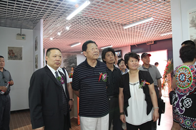 原周总理秘书、周恩来纪念馆馆长、著名书画家古今明先生在王信聪宋香菊夫妇的陪同下观看展览