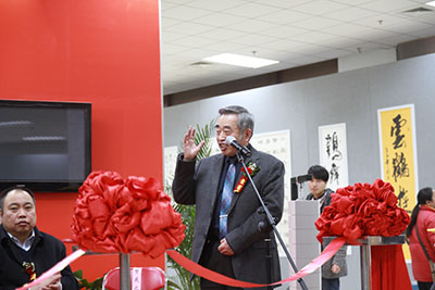 张金卫秘书长正在主持中国首次仙鹤精神书画艺术展开幕式