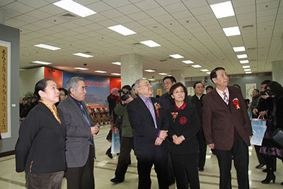 汪纪戎主席、李赣骝秘书长在贺茂之将军和张金卫秘书长的陪同下参观展览