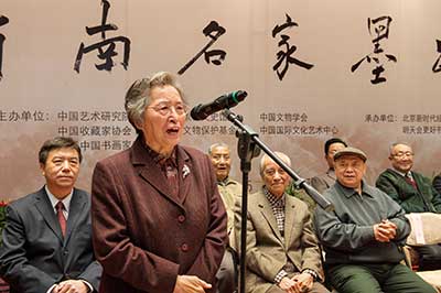 十届全国人大副委员长、十届民革中央主席何鲁丽宣布“岭南名家墨迹展”开幕