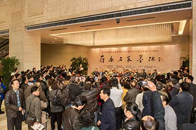 为纪念中国民主革命的伟大先行者孙中山先生诞辰147周年,弘扬岭南文化和精神,彰显岭南名家魅力,推动和促进当代岭南文化的发展,由中国艺术研究院、中国政协文史馆、中国文物学会、中国收藏家协会、中国文物保护基金会、中国国际文化艺术中心、国际中国书画家交流促进会共同主办的“岭南名家墨迹展”,于2013年11月5日,在中国政协文史馆隆重开幕。十届全国人大副委员长何鲁丽,全国政协副秘书长刘家强,中国文联原党组书记胡振民,原国家新闻出版总署署长于友先,十届全国人大常委、华侨委员会副主任王宋大,中共中央对外联络部原部长朱良,全国政协民族宗教专委会主任朱维群,原中共中央统战部副部长胡德平,国家民委原副主任李晋有,中国人民解放军海军副政委康成元,中国文联原副主席罗扬,国家文物局副局长张柏,中华慈善总会荣誉副会长邓培星,中国画学会副秘书长林金疆,社会各界知名人士邹佩珠、谢志高、宗家顺、薛铸、骆根兴、贾起家、张杰、杨明义、刘克雄、王裕国、沈一丹等中央和首都新闻界的朋友五百余人出席开幕式。国际中国书画家交流促进会秘书长张金卫主持了开幕式。中国政协文史馆馆长赵珩代表主承办单位讲话。张金卫秘书长宣读了发来贺信贺电名单: 全国人大副委员长许嘉璐、周铁农、顾秀莲,全国政协副主席阿不来提·阿不都热西提、李金华、厉无畏、王文元,原中共中央宣传部副部长、文化部代部长贺敬之,原人民日报社社长邵华泽,全国政协常委、中华慈善总会终身荣誉会长范宝俊,文化部原副部长、国际中国书画家交流促进会会长潘震宙,文化部原副部长、中国艺术研究院院长王文章,中纪委委员、司法部纪检组组长韩亨林,故宫博物院院长、中国文物学会会长单霁翔,中国作协副主席、书记处书记廖奔,中国文联副主席、中国曲艺家协会主席刘兰芳,全国政协常委、中国书协主席张海,全国政协常委、全国政协书画室副主任苏士澍,中国国家画院院长、中国美术家协会副主席杨晓阳,西泠印社社长、国学大师饶宗颐,以及老艺术家、专家学者王琦、廖静文、冯其庸、欧阳中石、邵大箴、薛永年等,他们都对展览表示祝贺并预祝展览取得圆满成功。何鲁丽副委员长宣布“岭南名家墨迹展”开幕,开幕式后,何鲁丽、胡振民、刘家强、王宋大、于友先、朱良、朱维群、胡德平、李晋有、康成元等领导还兴兴致勃勃地观看了展览。