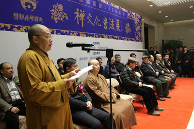 2013年12月24日,“禅文化书法展”在中国政协文史馆开幕。国际中国书画家交流促进会秘书长张金卫主持开幕式