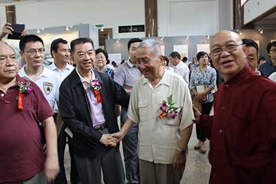于友先署长、李晋有将军、罗扬主席在李雄风先生的陪同下参观展览
