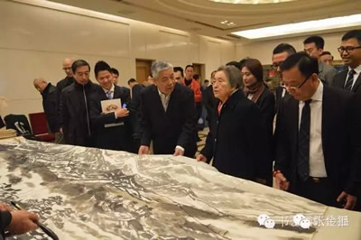 何鲁丽副委员长宣布“第二届中华之光(派顿杯)全国书画作品展”正式启动,并与张文台上将、陈士能会长、李晋有主任、谢安山院长、李赣骝秘书长、何东社长、郭廷真主任共同开启了标志活动启动的水晶球。