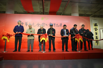 李晋有主任、李赣骝主席、罗扬主席、曹育民主任、赵长青主席、李少青局长、郭廷真董事长为展览剪彩