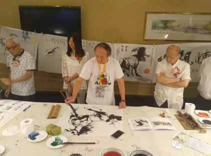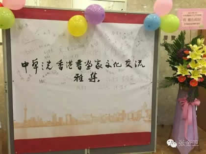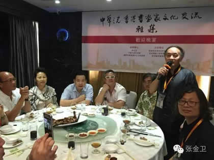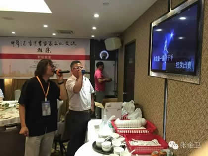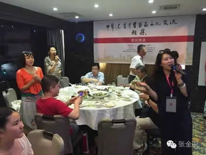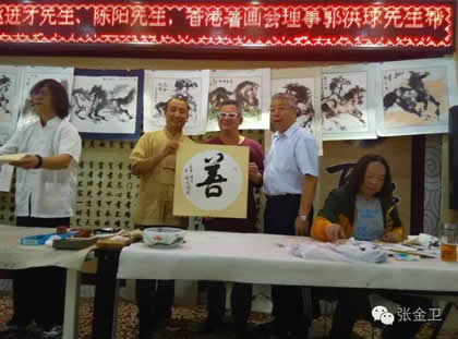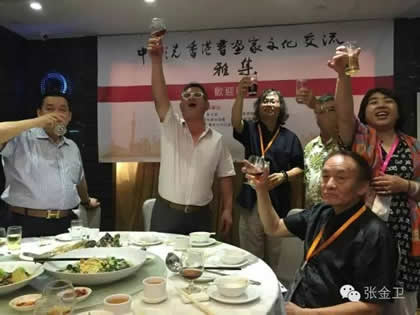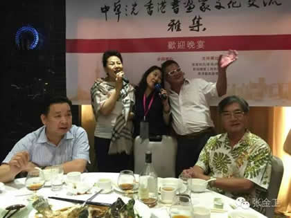 开幕式后,中华之光书画家赵进才、陈杨与香港书画家进行了书画艺术交流雅集活动。当天晚上举行了隆重的庆祝宴会。中华之光书画家赴港澳代表团一行与屯门警察书画会朋友、香港艺术界友好及无名堂书画家出席,席间各嘉宾谈笑甚欢,引吭高歌,郭主席与张秘书长合唱一曲“天路”,最后,郭洪球先生一曲“朋友”感谢代表团一行。