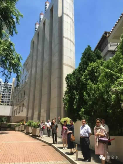 开幕式后,中午时分,两地书画艺术家及代表团成员赴香港屯门蓝地妙法寺茹素及参观寺内佛殿设计及特色园林景色,欣赏园内珍稀植物。期间,郭主席、张秘书长及代表团成员在寺内巧遇妙法寺住持释修智大和尚。妙法寺始建1950年,1980年建成万佛宝殿,2010年建成的莲花大殿,外貌破格,莲花形状,殿顶外墙玻璃斜身设计方便采光及避免室温太高。顶楼放置一尊香港最大室内木雕铺金释迦牟尼佛像,高25尺,佛像座下放有由住持亲自抄写的金刚经,经文两旁放有500幅罗汉画像。代表团对佛殿建筑设计及收藏大为赞赏。