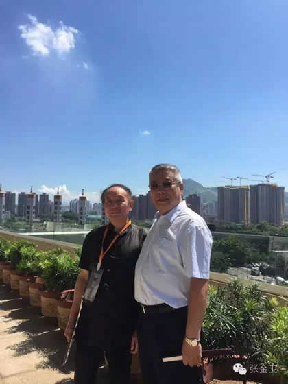 中华之光书画家赵进才先生与澳门霍英东基金会总干事史濠先生合影留念