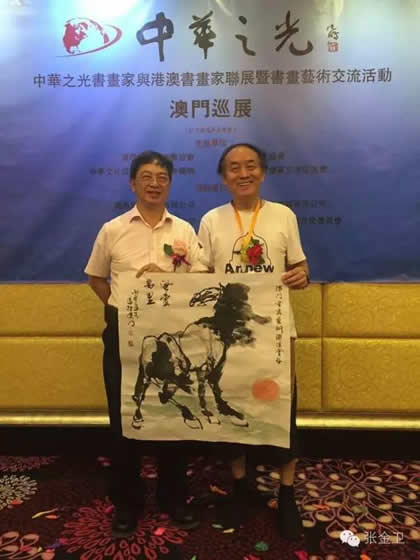 澳门书画艺术联谊会书画家向张金卫秘书长赠送作品