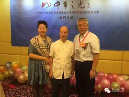 中华之光书画家赵进才先生与夫人与澳门书画艺术联谊会创会会长李秋平先生合影留念