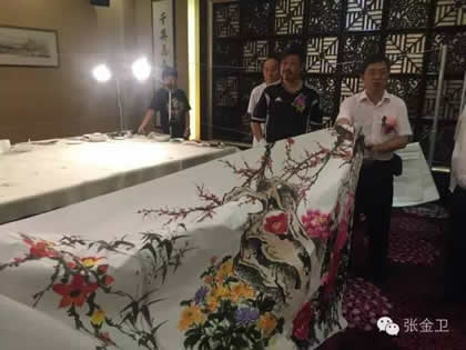 7月27日,由国际中国书画家交流促进会副会长覃汉龙任团长,国际中国书画家交流促进会秘书长张金卫任执行团长,国际中国书画家交流促进会副秘书长马秀英任副团长的中华之光书画家赴港澳代表团一行十人来到澳门,受到澳门书画艺术联谊会同仁的热情接待。澳门书画艺术联谊会创会会长李秋平,名誉会长陈鼎中、邹锡然,澳门霍英东基金会总干事史濠,澳门南光集团办公室主任季明,香港屯门文艺协进会视觉艺术委员会主席暨无名堂书法协会主席郭洪球,澳门书画艺术联谊会副会长黄达华、黄玉灵、何应彤,副理事长吴华康、邵婉儿、林琦明、彭祖儿、梁玉仪,澳门著名中医师刘振辉等出席“中华之光书画家与澳门书画家联展暨书画艺术交流活动”。在中华之光书画家与澳门书画家联展仪式上,张金卫秘书长、李秋平会长先后致辞。张金卫秘书长首先对澳门书画艺术联谊会及李秋平会长对本次活动给予的支持表示衷心的感谢,并希望借此次活动的机会,两地书画家相互切磋画艺,增进书画交流,传承中华优秀文化。在联展仪式后,举行了书画雅集活动。两地书画家兴致勃勃挥毫泼墨,共同创作国画《盛世繁华》。在雅集现场,中华之光书画家赵进才、陈杨代表代表团一行向澳门书画艺术联谊会、出席活动嘉宾赠送墨宝,同时,澳门书画家也向代表团赠送了墨宝,活动现场翰墨飘香,气氛热烈。仪式结束后,在代表团与澳门书画家在万豪轩举行了庆祝宴会。