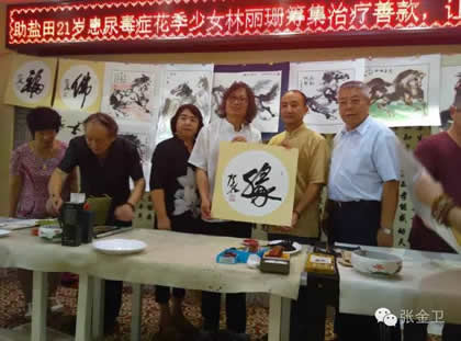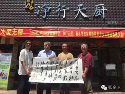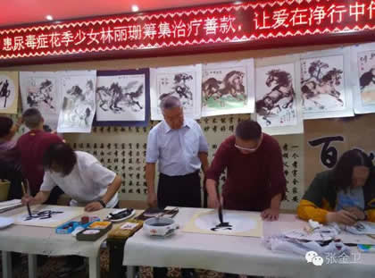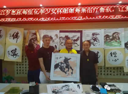 7月28日,中华之光书画家赴港澳代表团一行返回深圳,出席“为盐田21岁尿毒症花季少女林丽珊筹集善款”的慈善公益活动。屯门文艺协进会视觉艺术委员会主席郭洪球先生,中华之光书画家赵进才先生、陈杨先生,不顾此行数天劳累之苦,在现场倾情创作,希望用自身绵薄之力帮助患病少女早日恢复健康。