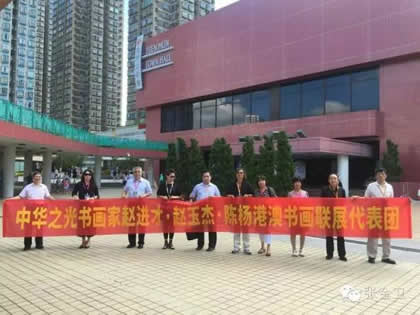 中华之光书画家赴港澳代表团在展览现场合影留念